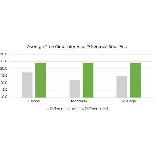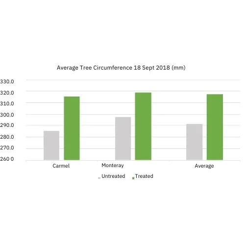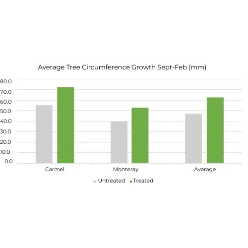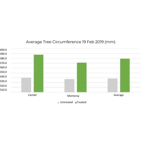 On average, the treated area showed a consistent 24% improvement in tree trunk circumference, translating into a higher product yield potential as well as improved capacity to withstand climatic extremes.